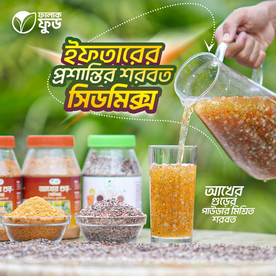 “সিড মিক্স ও আখের গুড়” একটি চমৎকার এবং পুষ্টিকর কম্বিনেশন। আখের গুড় (Sugarcane Powder) রিফাইনড চিনির একটি স্বাস্থ্যকর বিকল্প। এই ২টি উপাদান দিয়ে তৈরি শরবত শরীরের জন্যে হবে এক অন্যতম স্বাস্থ্যকর ডিটক্স। এটি শুধু একটি স্বাস্থ্যকর শরবত নই, বরং আপনার শরীরের জন্য একটি ‘প্রাকৃতিক মাল্টি-ভিটামিন’। চিনি বা কৃত্রিম মিষ্টির বদলে আখের গুড় আর ৫-৭ ধরণের বীজের এই মিশ্রণটি আপনার প্রতিদিনের এনার্জির উৎস হতে পারে।